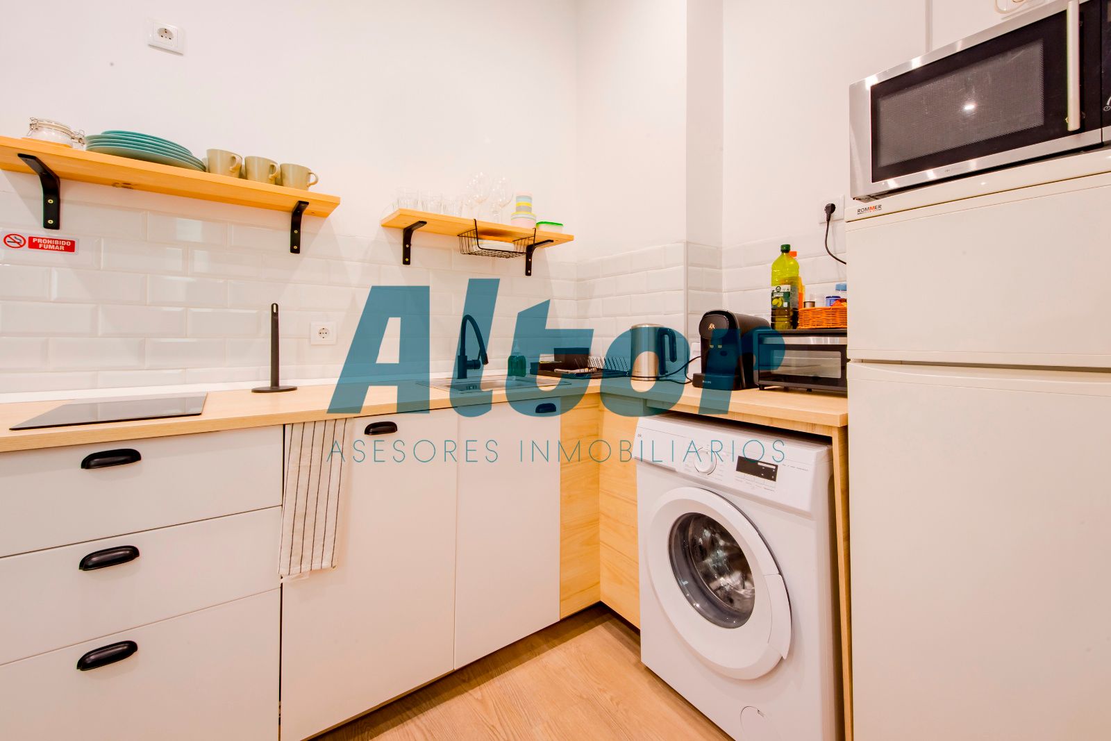 Cocina equipada, integrada en el salón para aprovechar al máximo la amplitud.
