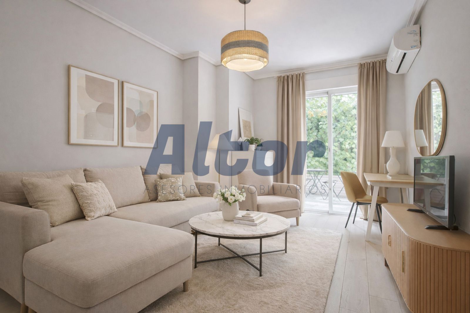 La vivienda cuenta con un acogedor salón lleno de luz natural, una cocina completamente equipada, un baño completo de diseño moderno y una espaciosa habitación con armarios empotrados. Uno de los mayores atractivos de este apartamento es su terraza privada de gran tamaño, por encima de rasante, perfecta para disfrutar de desayunos al sol, momentos de relax o cenas al aire libre.