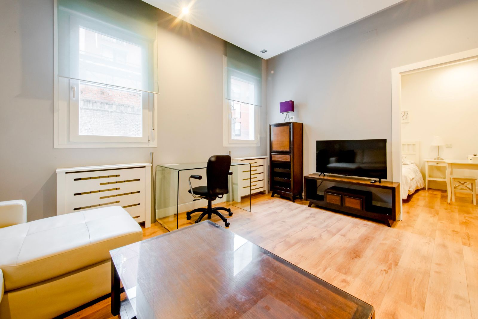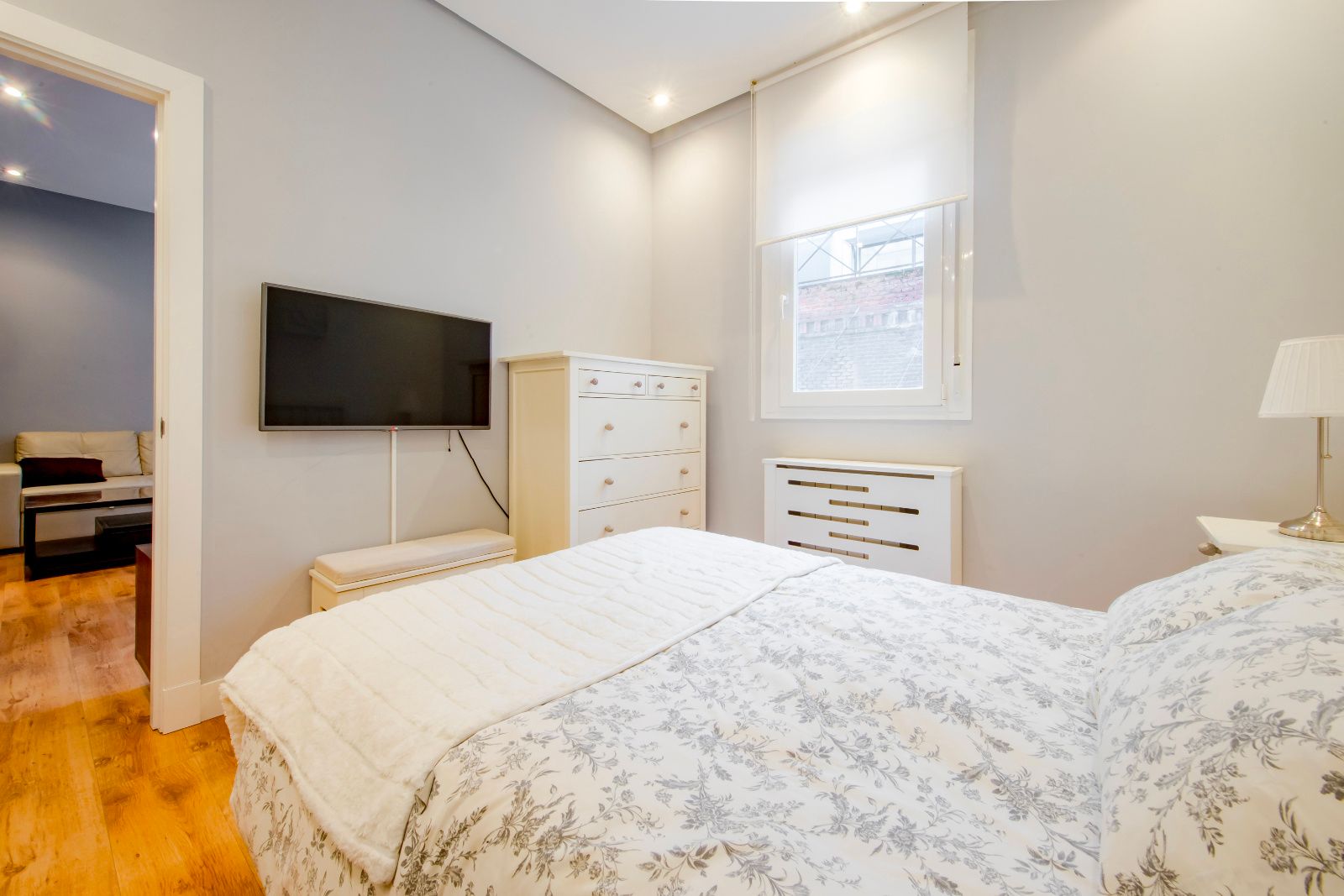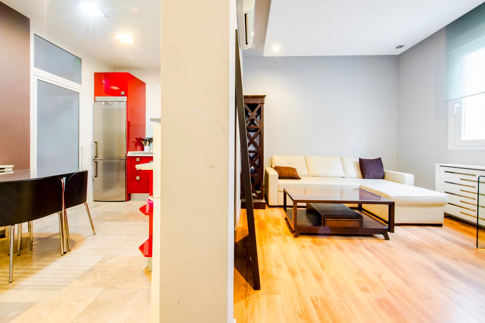 El salón es cómodo y luminoso, integrado con una cocina práctica, totalmente equipada y con gran capacidad de almacenamiento, con acceso a una pequeña terraza que aporta desahogo y luz natural.