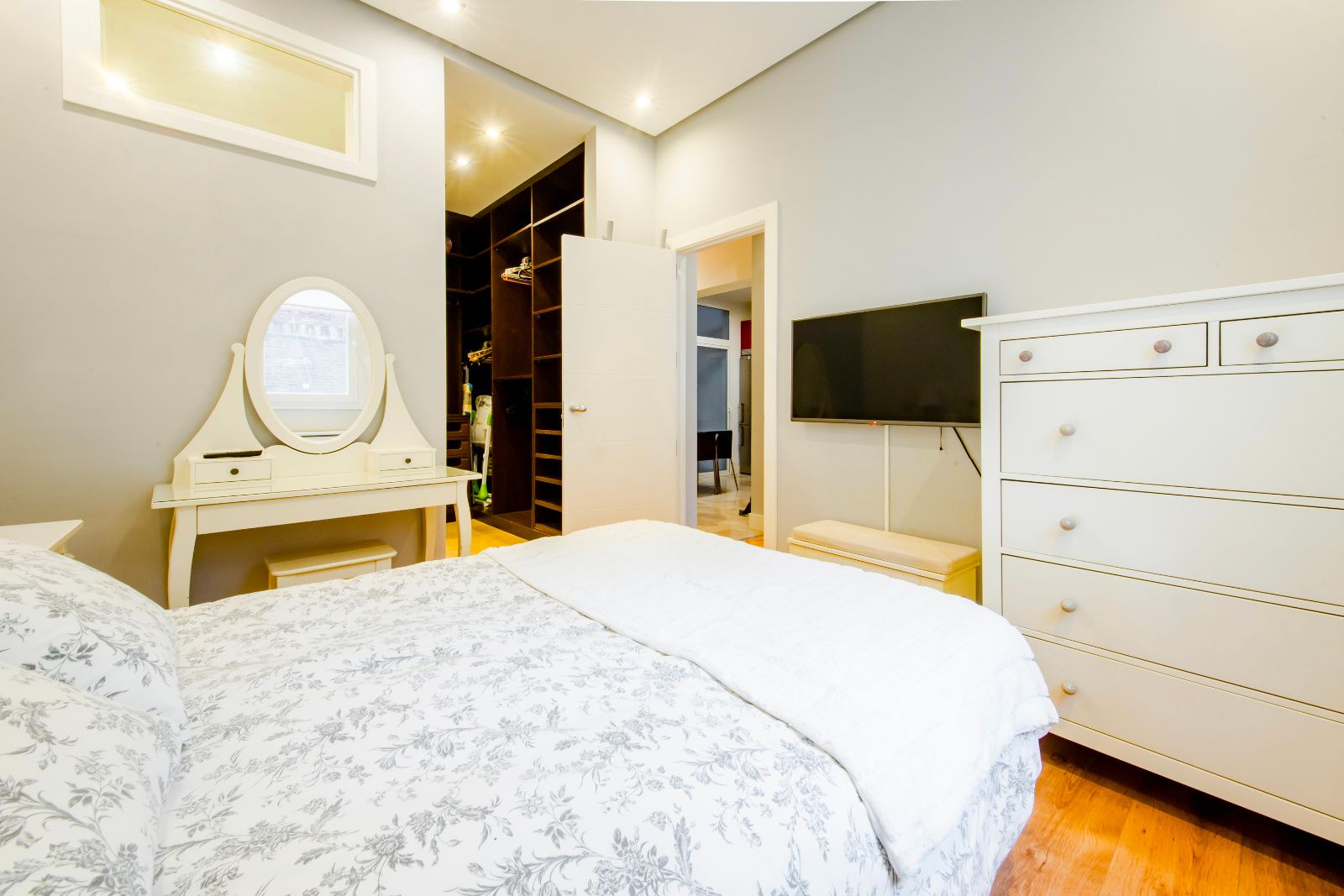 La vivienda dispone de un amplio dormitorio con baño completo en suite y vestidor de gran capacidad, ofreciendo comodidad y funcionalidad.
