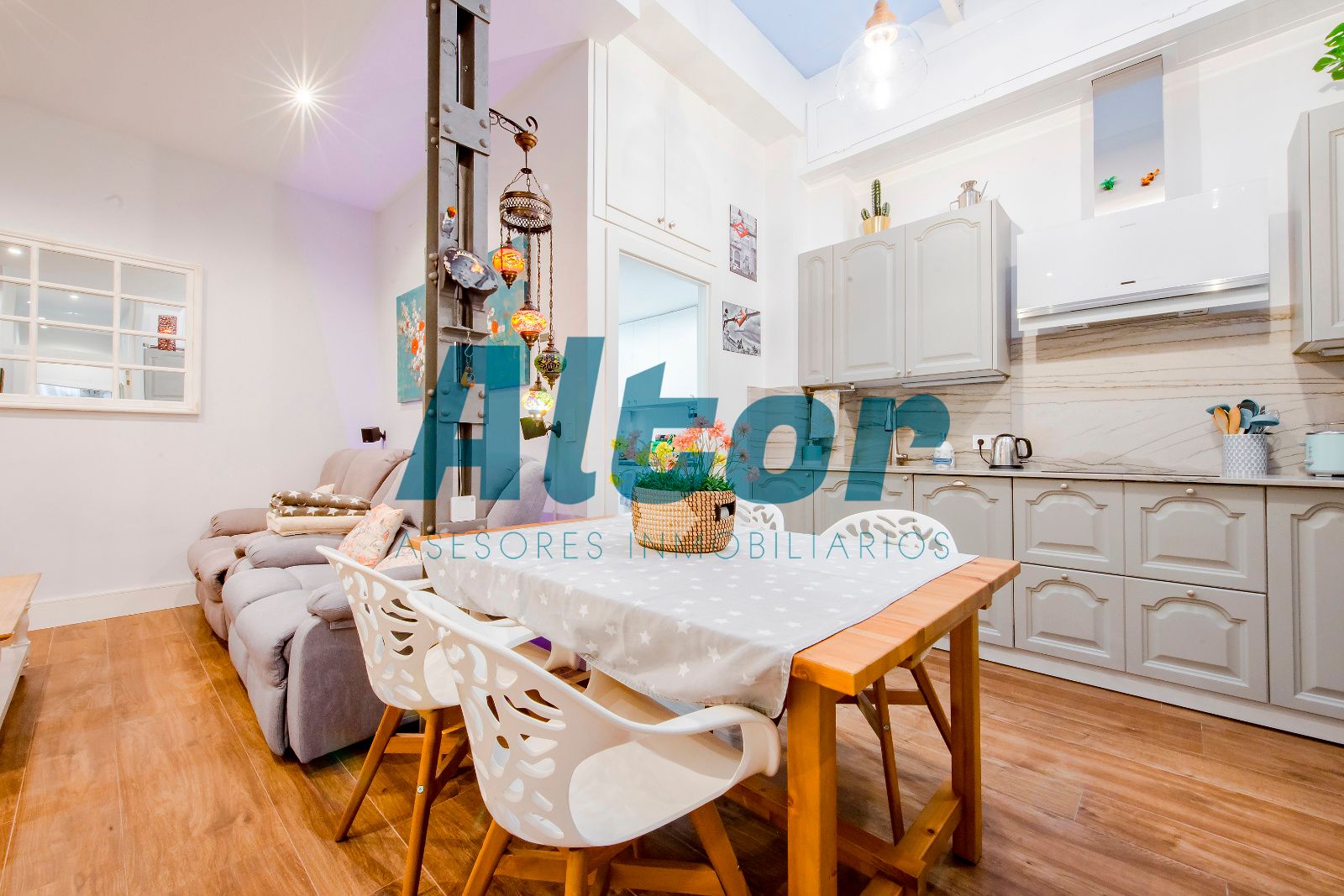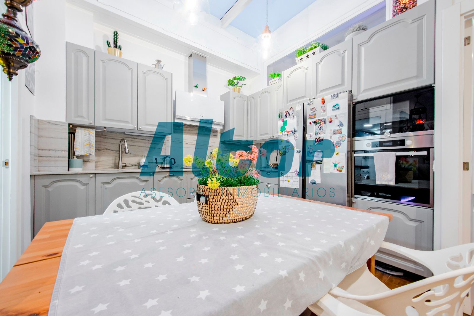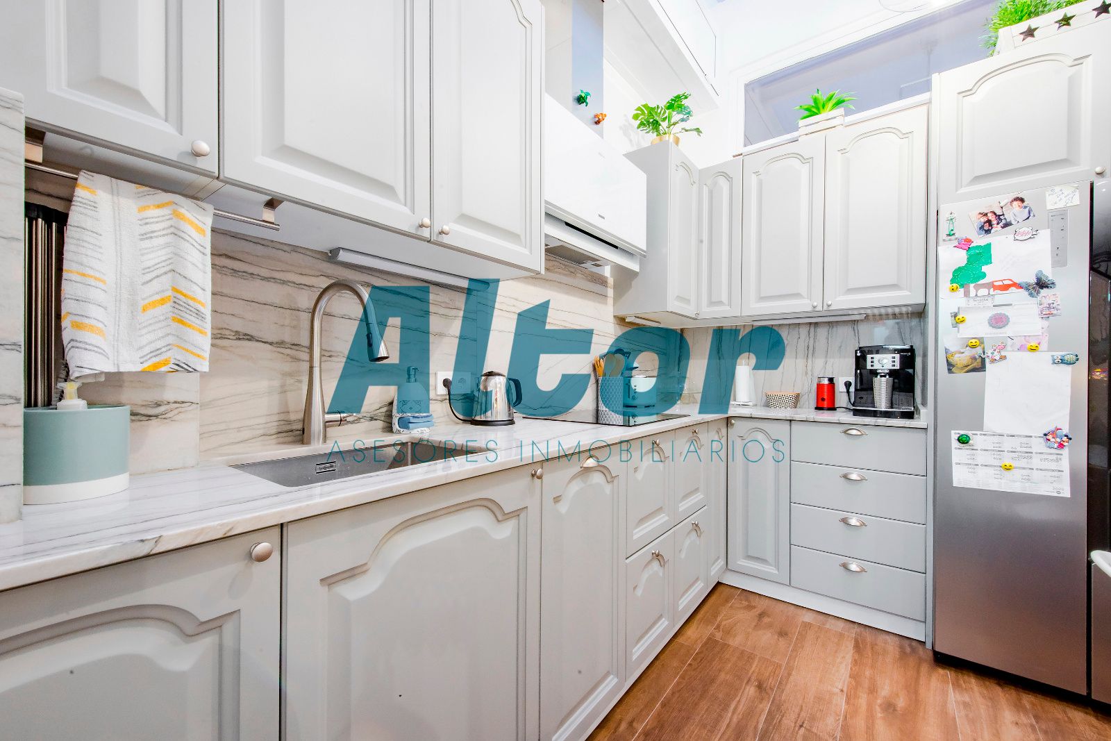 La cocina, completamente amueblada, destaca por su elegancia y funcionalidad, y existe la posibilidad de adquirir la vivienda con el mobiliario del resto de la casa, lista para entrar a vivir sin preocupaciones.