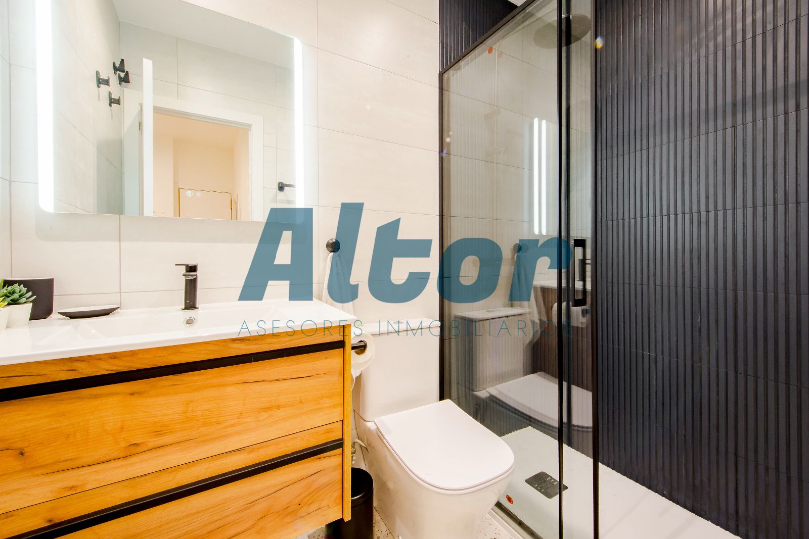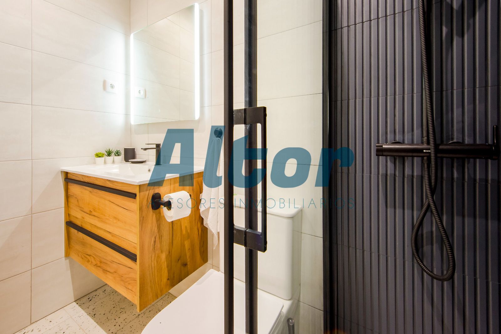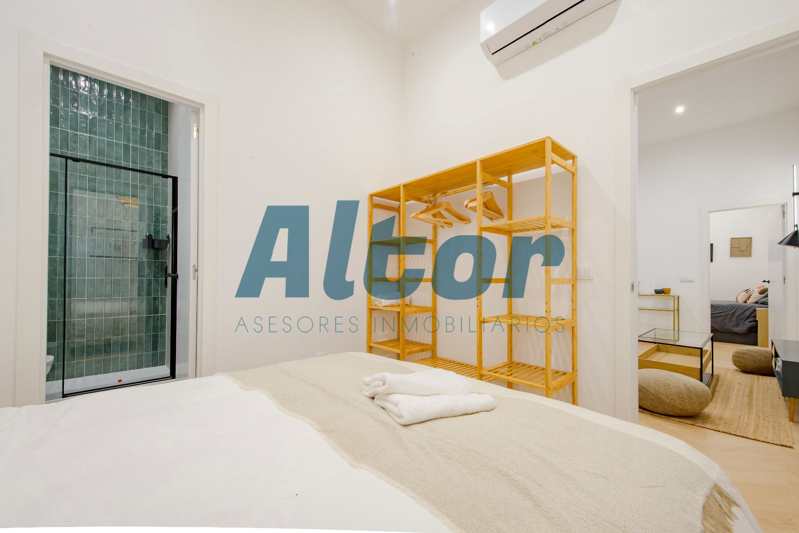 La propiedad cuenta con dos habitaciones, y dos baños completos, uno de ellos en suite, aportando mayor privacidad y confort. La zona de día se compone de un salón con cocina integrada, creando un espacio moderno y práctico, perfecto para el día a día.