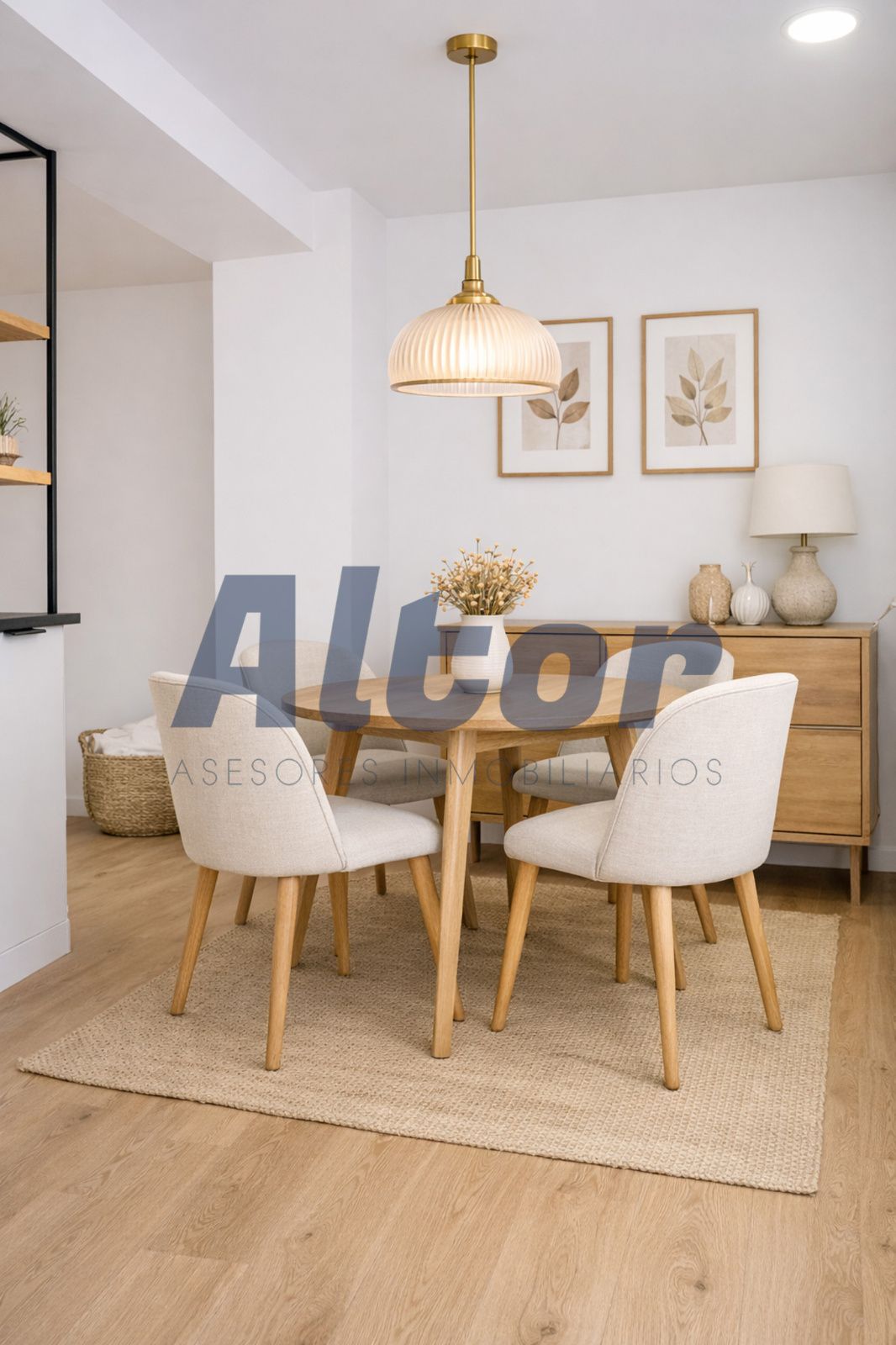 Amplio salón-comedor abierto a cocina hecha a medida, totalmente amueblada y equipada con todos los electrodomésticos.